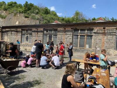 Ale tím naše cesta nekončila. Společně jsme se naobědvali. Do místa tak unikátního se v podstatě nic jiného než buřty nehodí. Děkujeme Lomům Mořina za skvělé zázemí.
