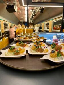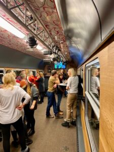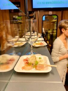 Večírek na kolejích s bohatým programem na míru, to nás baví! Jeden takový jsme uspořádali partě kolegů z Mladé Boleslavi. Trasu pro tuto cestu jsme vybrali Mladá Boleslav hl.n – Dětenice – Kopydlno – Mladá Boleslav hl.n. V našem zážitkovém vlaku byl připravený bar, hudba, skvělý catering a k tomu jako doprovodný program řízená degustace výborných vín, která byla párována se sýry a uzeninami. Dále proběhla hra bingo a po cestě jako venkovní překvapení ohňostroj. Celý večer byl opravdu nabitý zážitky a celá skupina se dobře bavila. Těšíme se na další setkání!