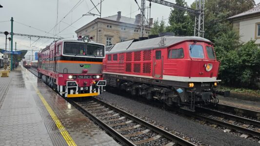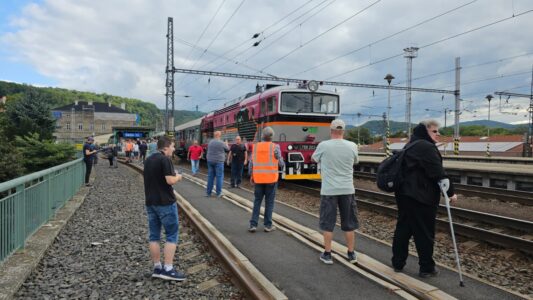 Do Děčína dorazil vlak o sedmi vagonech tažený impozantní lokomotivou přezdívanou Ragulin – strojem původem ze Sovětského svazu, který svou mohutností a charakteristickým zvukem budil respekt i obdiv. Z Děčína pak soupravu převzala naše četa s českým červeným brejlovcem 750.202, jenž se okamžitě stal středem pozornosti přítomných fanoušků. Není divu – brejlovci patří mezi legendy českých tratí a i tentokrát dokázali, že mají své kouzlo.