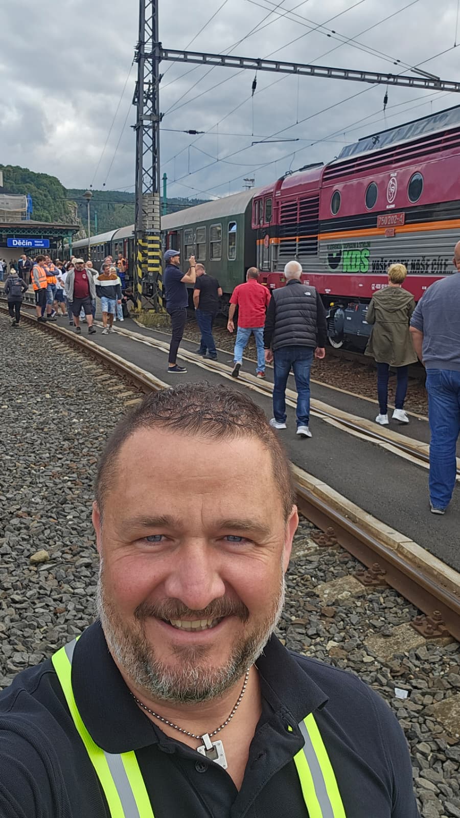 Do Děčína dorazil vlak o sedmi vagonech tažený impozantní lokomotivou přezdívanou Ragulin – strojem původem ze Sovětského svazu, který svou mohutností a charakteristickým zvukem budil respekt i obdiv. Z Děčína pak soupravu převzala naše četa s českým červeným brejlovcem 750.202, jenž se okamžitě stal středem pozornosti přítomných fanoušků. Není divu – brejlovci patří mezi legendy českých tratí a i tentokrát dokázali, že mají své kouzlo.