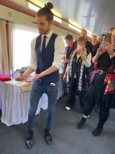 A že to byla jízda! Několikavozová souprava byla na svůj okruh vybavena nejen nápoji a chutným cateringem, ale nad to dokonce kouzelníkem, který nenechal nikoho na pochybách o tom, že magie je prostě nejasně definovaný fenomén. Kouzla, která nechávala přítomné v barovém voze i kupátkách v nevědomí, jak se „to“ vlastně stalo.